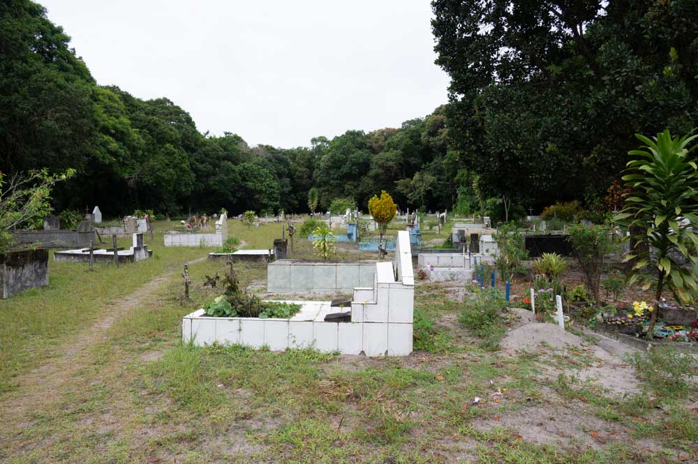 fomos para um cemitério, que no google maps estava intitulado como “cemitério dos índios”, no caminho, encontramos uma senhora a qual respondeu “índios? não, aqui é o cemitério da ILHA”, deixando a entender que é o único cemitério da ilha comprida
