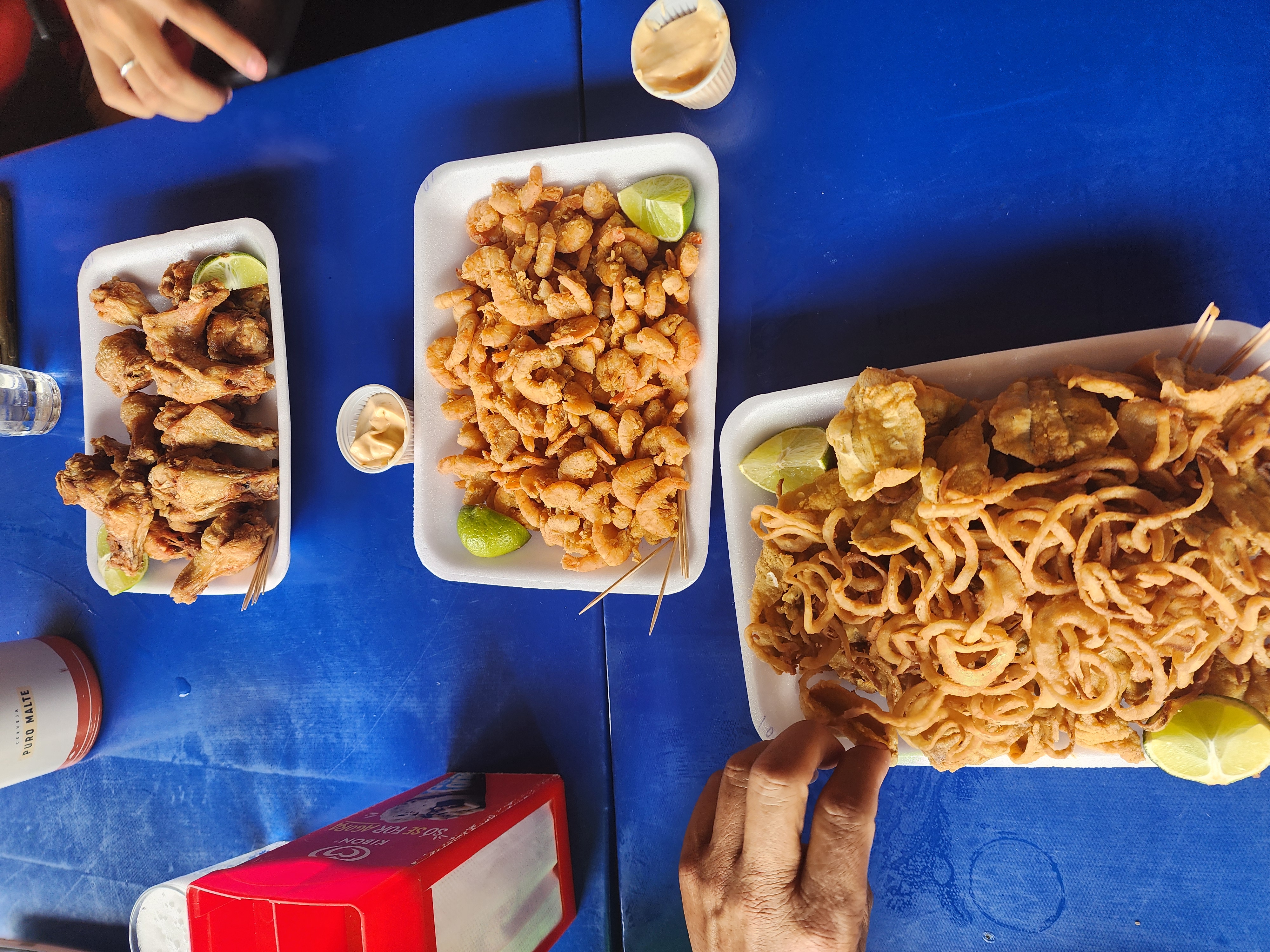 pedimos umas porções de camarão, peixes etc. meu irmão pediu de frango, porque ainda é jovem.