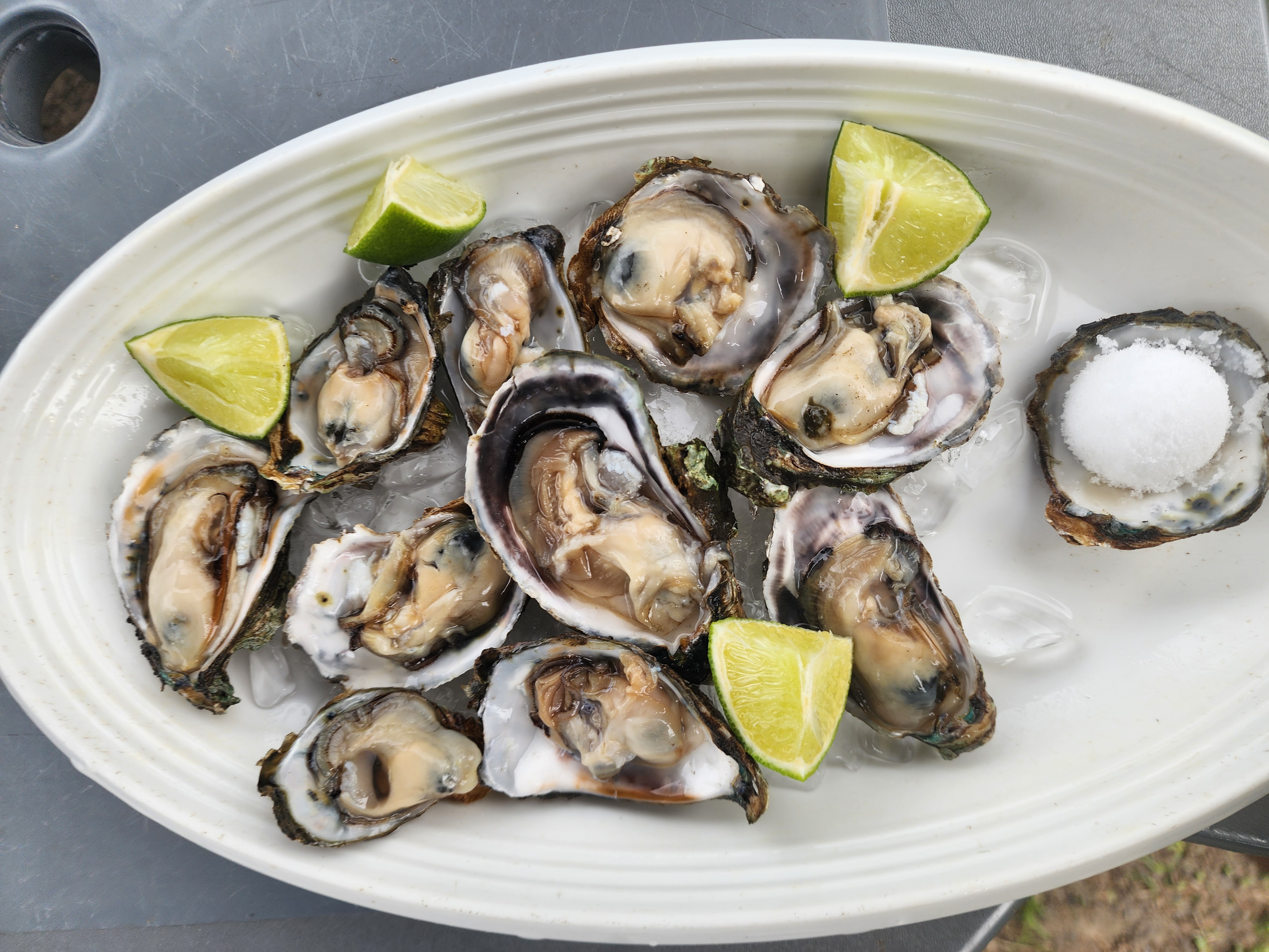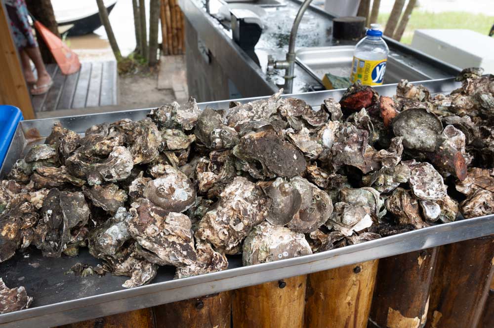 também tinha uma barraca de ostras. eu e minha companheira éramos os únicos que já tínhamos comido essa iguaria, então levou um tempo para convencer todo mundo.